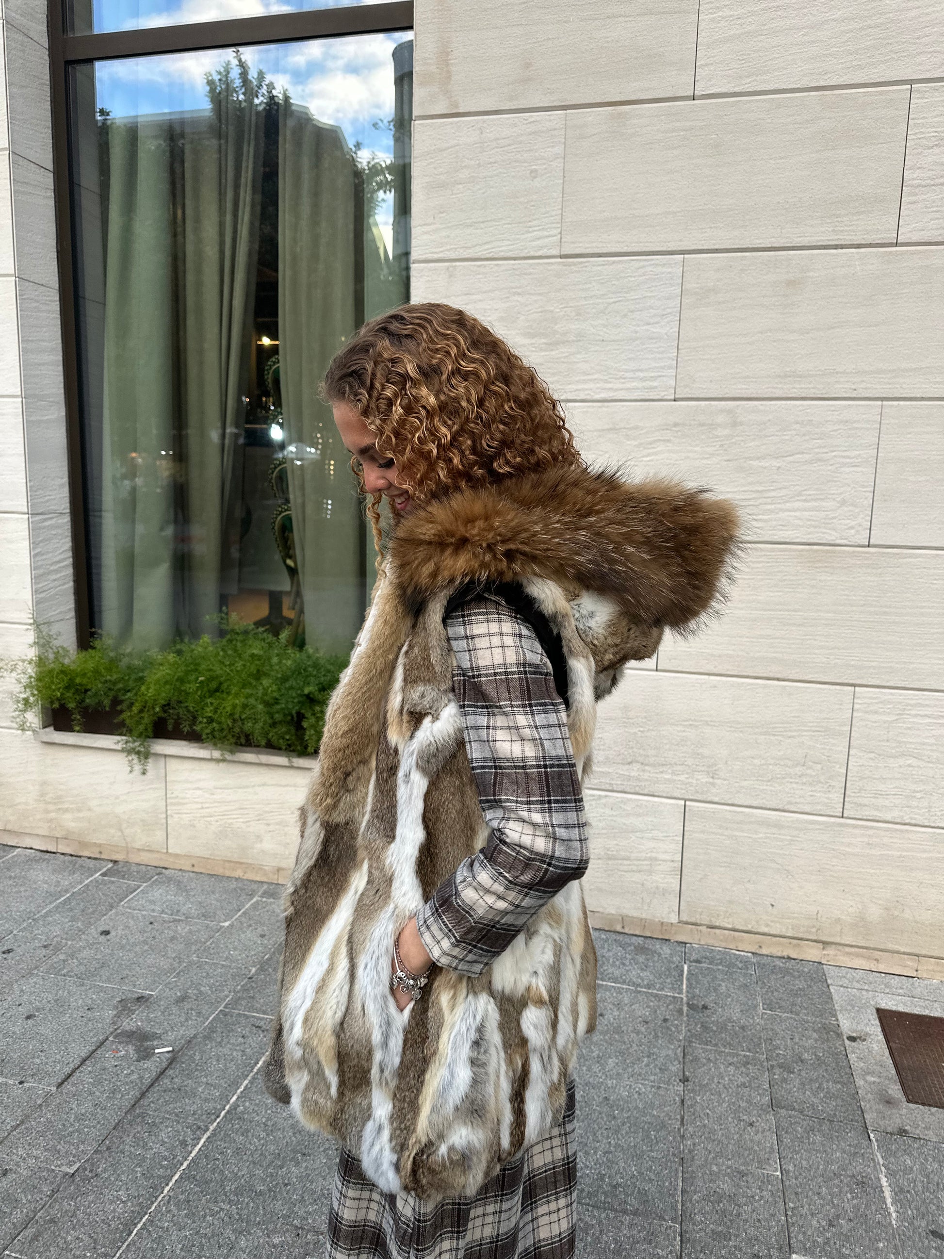 Abrigo sin mangas de pelo natural Conejo